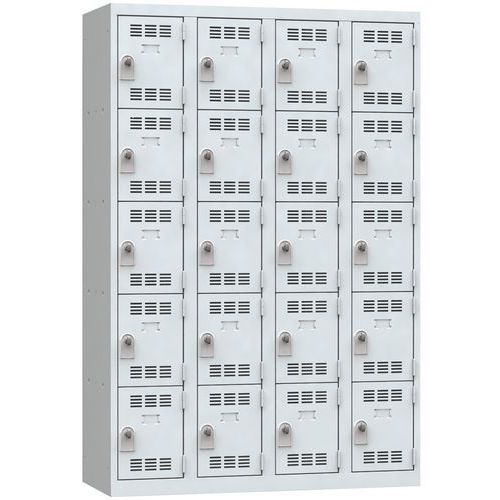 Vestiaire multicases 1 à 4 colonnes avec cases superposées par colonne. De type monobloc, il est soudé en usine pour plus de robustesse et de rigidité. Économique et fonctionnel, grâce à ses larges cases. Permet de ranger différents types d'équipements ou objets. Convient pour les écoles, centres sportifs, hôpitaux, entreprises, secteur tertiaire comme industriel, etc