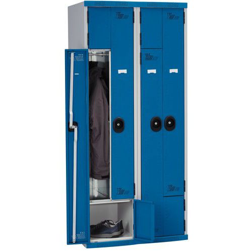 | Intitulé du produit | Vestiaire porte L, Type de vestiaire: Porte en L, Matériau: Acier, Nb de cases/colonne: 2, Nb de colonnes: 2 |