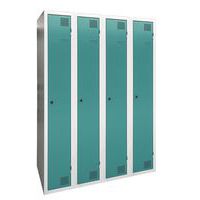 Vestiaire séchant à air chaud pulsé, de grande robustesse, avec case et penderie. Corps et porte en tôle électrozinguée, avec oméga de renfort sur toute la hauteur. Confortable d'utilisation avec un système de charnières offrant une ouverture à 180°. Hygiénique avec une double aération en façade, en partie haute et basse du vestiaire. Belle finition peinture époxy laquée, déclinée en une large palette de coloris attrayants. 2 fermetures au choix : serrure à clé ou moraillon porte-cadenas. Vestiaire avec porte étiquette. Produit fabriqué en France.
