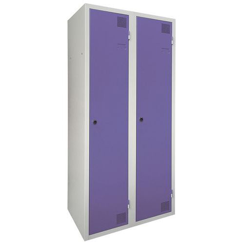 Vestiaire séchant à air chaud pulsé, très robuste, avec case et double penderie. Penderie double compartiment : rangement séparé des vêtements propres/salis. Corps et porte en tôle électrozinguée, avec oméga de renfort sur toute la hauteur. Confortable d'utilisation avec un système de charnières offrant une ouverture à 180°. Hygiénique avec une double aération en façade, en partie haute et basse du vestiaire. Belle finition peinture époxy laquée, déclinée en une large palette de coloris attrayants. 2 fermetures au choix : serrure à clé ou moraillon porte-cadenas. Vestiaire avec porte étiquette. Produit fabriqué en France.