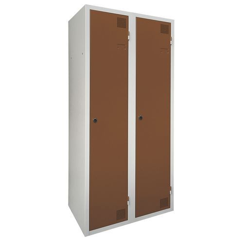 Vestiaire séchant à air chaud pulsé, très robuste, avec case et double penderie. Penderie double compartiment : rangement séparé des vêtements propres/salis. Corps et porte en tôle électrozinguée, avec oméga de renfort sur toute la hauteur. Confortable d'utilisation avec un système de charnières offrant une ouverture à 180°. Hygiénique avec une double aération en façade, en partie haute et basse du vestiaire. Belle finition peinture époxy laquée, déclinée en une large palette de coloris attrayants. 2 fermetures au choix : serrure à clé ou moraillon porte-cadenas. Vestiaire avec porte étiquette. Produit fabriqué en France.