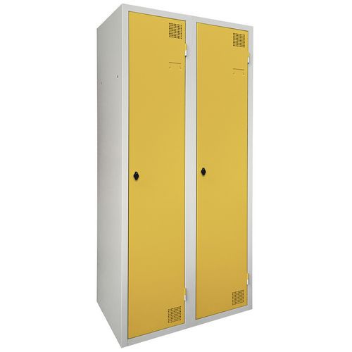 Vestiaire séchant à air chaud pulsé, très robuste, avec case et double penderie. Penderie double compartiment : rangement séparé des vêtements propres/salis. Corps et porte en tôle électrozinguée, avec oméga de renfort sur toute la hauteur. Confortable d'utilisation avec un système de charnières offrant une ouverture à 180°. Hygiénique avec une double aération en façade, en partie haute et basse du vestiaire. Belle finition peinture époxy laquée, déclinée en une large palette de coloris attrayants. 2 fermetures au choix : serrure à clé ou moraillon porte-cadenas. Vestiaire avec porte étiquette. Produit fabriqué en France.