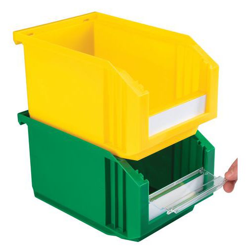 Mise en place rapide. Visière manipulable même sur bac gerbé.