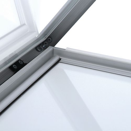 - Insertion de l‘affiche aisée avec un cadre aluminium de 15mm de haut en bas.
