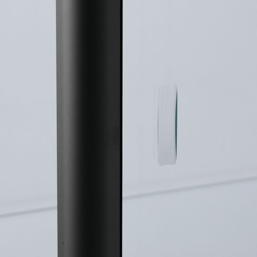 - Porte coulissante en verre trempé (6 mm) avec verrou.