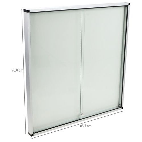 Vitrine d'affichage intérieur robuste, sûre et légère. Surface magnétique en acier laqué pour l'affichage de vos documents par plots magnétiques. Porte coulissante verrouillable transparente offrant une excellente visibilité des affichages du matériel affiché. Vitrine en verre renforcé 5 mm d'épaisseur pour plus de sécurité. Verrouillable et fournie avec 2 clés.