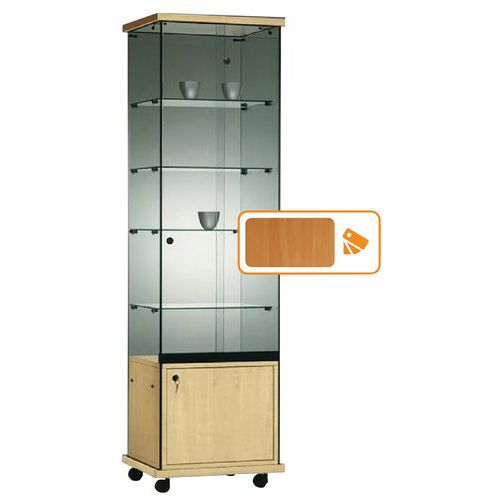 Vitrine Easy E5, Socle coloris: Hêtre, Hauteur: 182 cm, Largeur: 52 cm, Profondeur: 47 cm, Nb de tablettes: 4