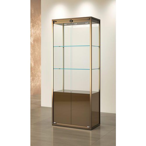 Vitrine exposition avec rangement, Socle coloris: Bronze, Hauteur: 190 cm, Largeur: 75 cm, Profondeur: 45 cm