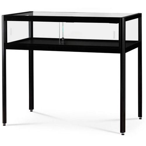 Vitrine exposition sur pieds, Socle coloris: Noir, Hauteur: 92 cm, Largeur: 100 cm, Profondeur: 60 cm