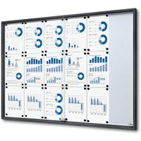 Vitrine verrouillable avec portes coulissantes. Portes coulissantes équipées de verre de sécurité. Aspect fin et élégant. Inscriptible et utilisable avec aimant. Fabriqué en UE