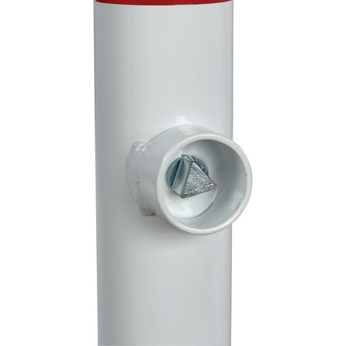 | Productnaam | Ronde stalen paal, Type product: Met oogjes, Paal Ø: 60 mm, Kleur: Rood/wit, Totale hoogte: 1007 mm |