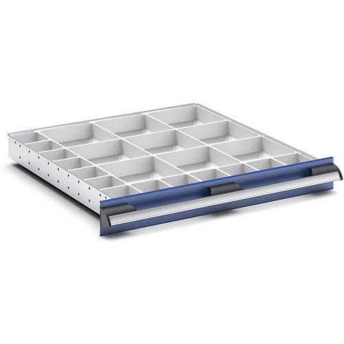 | Productnaam | Assortiment EKK-6675. 22 kleingoedbak, Breedte: 650 mm, Diepte: 650 mm, Hoogte: 75 mm, Kleur: Lichtgrijs |
