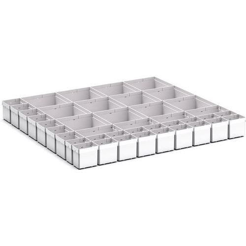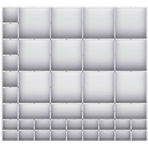 | Productnaam | Assortiment EKK-87100. 41 kleingoedbak, Breedte: 800 mm, Diepte: 750 mm, Hoogte: 100 mm, Kleur: Lichtgrijs |