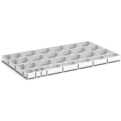 | Productnaam | Assortiment EKK0675. 29 kleingoedbak, Breedte: 1050 mm, Diepte: 650 mm, Hoogte: 75 mm, Kleur: Lichtgrijs |