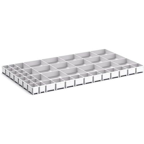 | Productnaam | Assortiment EKK0675. 43 kleingoedbak, Breedte: 1050 mm, Diepte: 650 mm, Hoogte: 75 mm, Kleur: Lichtgrijs |