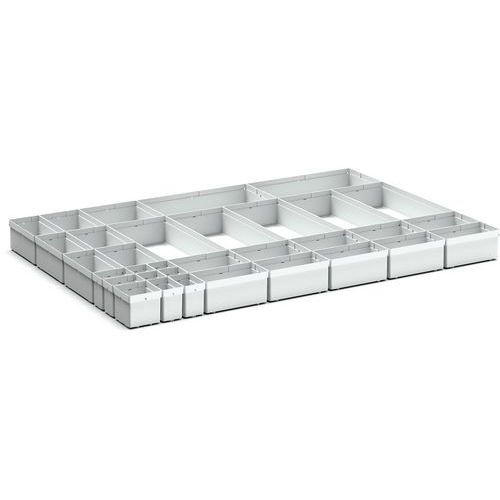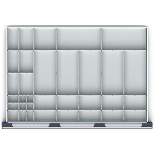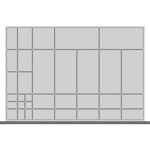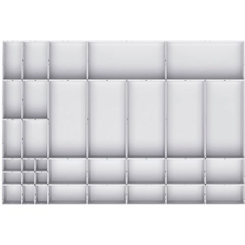 | Productnaam | Assortiment EKK07100. 33 kleingoedbak, Breedte: 1050 mm, Diepte: 650 mm, Hoogte: 100 mm, Kleur: Lichtgrijs |