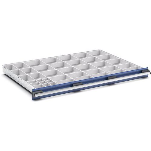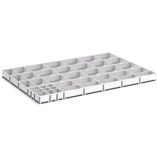 | Productnaam | Assortiment EKK0775. 40 kleingoedbak , Breedte: 1050 mm, Diepte: 750 mm, Hoogte: 75 mm, Kleur: Lichtgrijs |