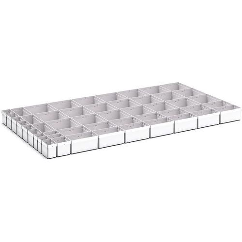 | Productnaam | Assortiment EKK37100. 50 kleingoedbak, Breedte: 1300 mm, Diepte: 750 mm, Hoogte: 100 mm, Kleur: Lichtgrijs |