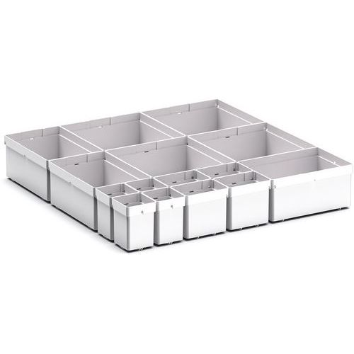 | Productnaam | Assortiment EKK5100. 15 kleingoedbak, Breedte: 525 mm, Diepte: 525 mm, Hoogte: 100 mm, Kleur: Lichtgrijs |