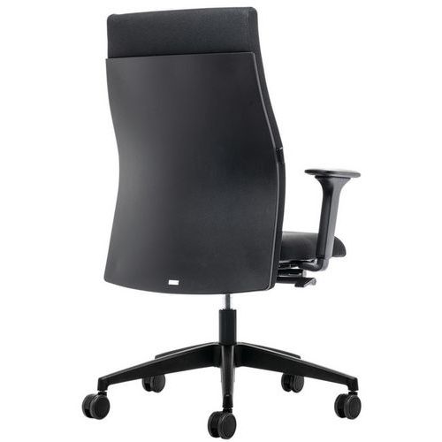 Draaibare bureaustoel met hoge gewatteerde rugleuning. Systeem op synchroon mechanisme met automatische spanningsaanpassing. In hoogte verstelbare lendensteun. 4D T-armleuningen om de spieren van de nek en nek te ontlasten. Vergrendelbaar in de voor- en achterpositie voor meer flexibiliteit.