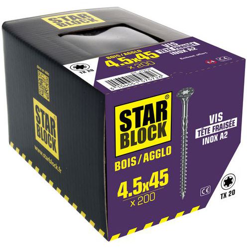 | Productnaam | Doos met 200 torxschroeven 4,5x45 mm, Materiaal: Roestvrij staal, Schroefdraad Ø: 4.5 mm |