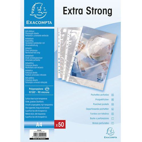 | Productnaam | Geperforeerde showtas glad PP 9/100ste A4 Pak van 50 Exacompta, Kleur: Transparant |