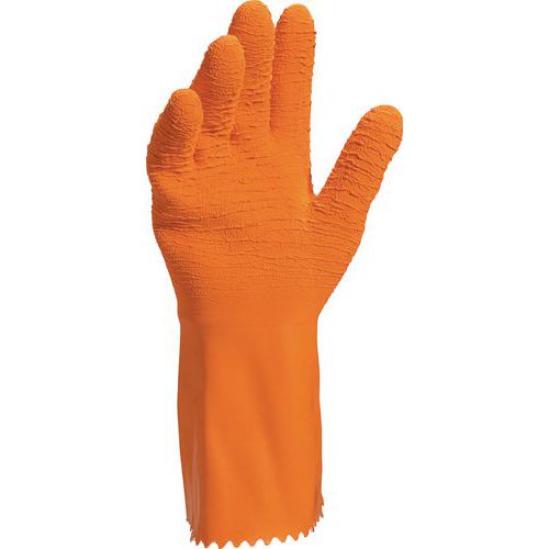 | Productnaam | Handschoen latex Op Interlock katoen Drager 30 Cm VE990, Materiaal: Latex, Kleur: Oranje, Handschoen maat: 10 |