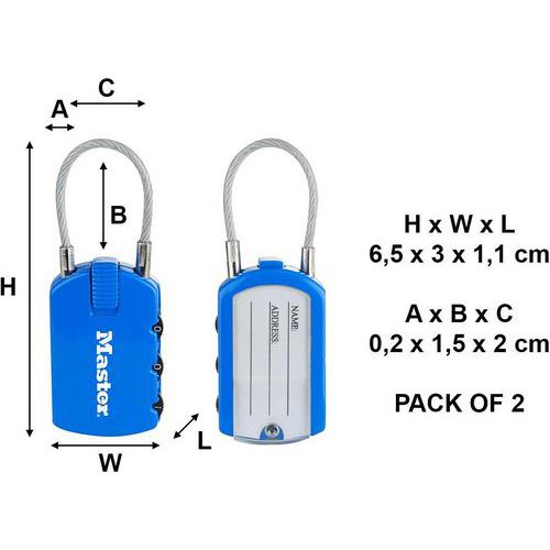 | Productnaam | Hangslot met adreslabel 10cm gekleurd 4684EUR, Beugel Ø: 2 mm, Aantal draaischijven: 3, Lengtes: 60 mm |