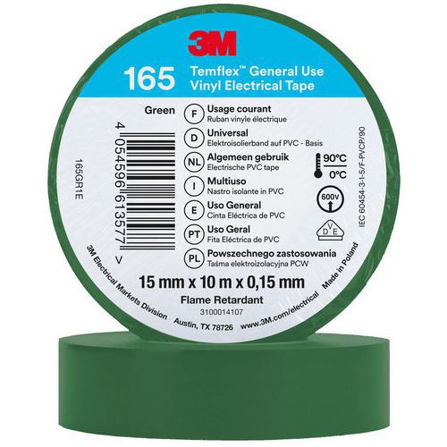 De elektrische vinyltape 3M™ Temflex™ 165 is een professionele, isolatietape van pvc van 0,15 mm dik,...