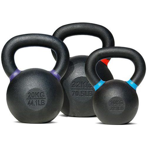 - Kettlebells van hoogwaardig staal, constructie uit één stuk