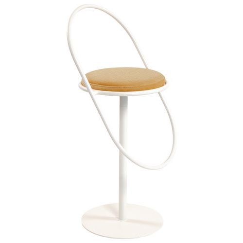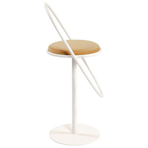 Kruk met een modern ontwerp van 100% gerecycled staal en een niet-verwijderbare zitting van stof met een laag pvc, voor eenvoudig onderhoud. De zitting kan voor een langere levensduur vervangen worden. Frame: buis Ø 20 mm van 100% gerecycled staal met een epoxy-afwerking Onderstel: buis Ø 40 mm van staal met epoxy-afwerking Zitting: multiplex paneel, dikte 12 mm Voering: polyurethaanschuim 30 kg/m3, dikte 30 mm