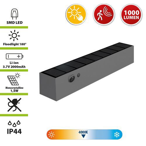 | Productnaam | Wandlamp led op zonne-energie met bewegingssensor Malick, Lichtstroom: 1000 lm, Type lamp: Led lamp of module |