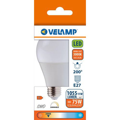 | Productnaam | Ledlamp SMD dimbaar, standaard A60, Lichtstroom: 1055 lm, Type fitting: E27 |