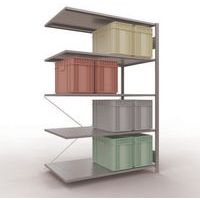 Robuuste magazijnstelling, gegalvaniseerde afwerking, zeer bestand tegen vochtige omgevingen. Dichte legborden van plaatstaal die producten van verschillende afmetingen kunnen dragen. Industriële stelling, eenvoudig en snel te monteren door in elkaar te schuiven, zonder speciaal gereedschap. Eenvoudig uit te breiden met één of meer aanbouwstelling(en). Afstand tussen de perforaties: 25 mm. Hoogte van de eerste perforatie: 50 mm. Hoogte van de eerste perforatie: 22,5 mm.
