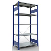 Stellingsysteem, stevig en zeer compleet, met fraaie afwerking met grijze of blauwe epoxylak. Dichte legborden van plaatstaal die producten van verschillende afmetingen kunnen dragen. Industriële stelling, eenvoudig en snel te monteren door in elkaar te schuiven, zonder speciaal gereedschap. Eenvoudig uit te breiden met één of meer aanbouwstelling(en).