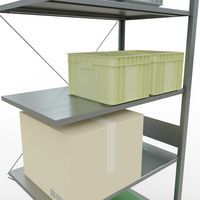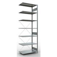 Robuuste magazijnstelling, gegalvaniseerde afwerking, zeer bestand tegen vochtige omgevingen. Dichte legborden van plaatstaal die producten van verschillende afmetingen kunnen dragen. Industriële stelling, eenvoudig en snel te monteren door in elkaar te schuiven, zonder speciaal gereedschap. Eenvoudig uit te breiden met één of meer aanbouwstelling(en). Afstand tussen de perforaties: 25 mm. Hoogte van de eerste perforatie: 50 mm. Hoogte van de eerste perforatie: 22,5 mm.