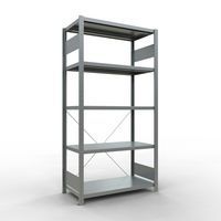 Robuuste magazijnstelling, gegalvaniseerde afwerking, zeer bestand tegen vochtige omgevingen. Dichte legborden van plaatstaal die producten van verschillende afmetingen kunnen dragen. Industriële stelling, eenvoudig en snel te monteren door in elkaar te schuiven, zonder speciaal gereedschap. Eenvoudig uit te breiden met één of meer aanbouwstelling(en). Afstand tussen de perforaties: 25 mm. Hoogte van de eerste perforatie: 50 mm. Hoogte van de eerste perforatie: 22,5 mm.