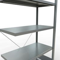 Robuuste magazijnstelling, gegalvaniseerde afwerking, zeer bestand tegen vochtige omgevingen. Dichte legborden van plaatstaal die producten van verschillende afmetingen kunnen dragen. Industriële stelling, eenvoudig en snel te monteren door in elkaar te schuiven, zonder speciaal gereedschap. Eenvoudig uit te breiden met één of meer aanbouwstelling(en). Afstand tussen de perforaties: 25 mm. Hoogte van de eerste perforatie: 50 mm. Hoogte van de eerste perforatie: 22,5 mm.