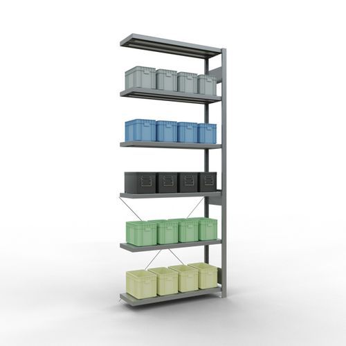 Lichte stelling Easy-Fix, Max. belasting per legbord: 330 kg, Hoogte: 2500 mm, Aantal legborden: 6 Lichte stelling Easy-Fix, Max. belasting per legbord: 330 kg, Hoogte: 2500 mm, Aantal legborden: 6