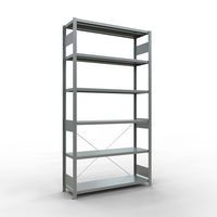 Robuuste magazijnstelling, gegalvaniseerde afwerking, zeer bestand tegen vochtige omgevingen. Dichte legborden van plaatstaal die producten van verschillende afmetingen kunnen dragen. Industriële stelling, eenvoudig en snel te monteren door in elkaar te schuiven, zonder speciaal gereedschap. Eenvoudig uit te breiden met één of meer aanbouwstelling(en). Afstand tussen de perforaties: 25 mm. Hoogte van de eerste perforatie: 50 mm.