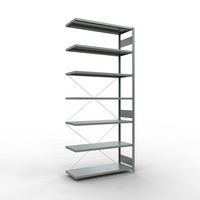 Robuuste magazijnstelling, gegalvaniseerde afwerking, zeer bestand tegen vochtige omgevingen. Dichte legborden van plaatstaal die producten van verschillende afmetingen kunnen dragen. Industriële stelling, eenvoudig en snel te monteren door in elkaar te schuiven, zonder speciaal gereedschap. Eenvoudig uit te breiden met één of meer aanbouwstelling(en). Afstand tussen de perforaties: 25 mm. Hoogte van de eerste perforatie: 50 mm. Hoogte van de eerste perforatie: 22,5 mm.