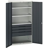 Constructie van plaatstaal met verstevigde deuren Gegalvaniseerde stalen legborden, verstelbaar in stappen van 25 mm Belasting per legbord en lade 60 kg Binnenlades gemonteerd op lagers Diepte 550 mm Veiligheidstips: - installeer het meubilair op een vlak oppervlak - bevestig het op een muur of scheidingswand met een geschikte bevestiging - ervoor te zorgen dat de maximale aanbevolen belasting niet wordt overschreden, evenals de juiste verdeling ervan Gemaakt in het UK Max. belasting per legbord (kg) : 75 kg Max. belasting (kg) : 1000 kg