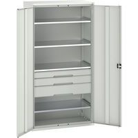 Constructie van plaatstaal met verstevigde deuren Gegalvaniseerde stalen legborden, verstelbaar in stappen van 25 mm Belasting per legbord en lade 60 kg Binnenlades gemonteerd op lagers Diepte 550 mm Veiligheidstips: - installeer het meubilair op een vlak oppervlak - bevestig het op een muur of scheidingswand met een geschikte bevestiging - ervoor te zorgen dat de maximale aanbevolen belasting niet wordt overschreden, evenals de juiste verdeling ervan Gemaakt in het UK Max. belasting per legbord (kg) : 75 kg Max. belasting (kg) : 1000 kg