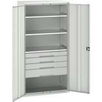 Constructie van plaatstaal met verstevigde deuren Gegalvaniseerde stalen legborden, verstelbaar in stappen van 25 mm Belasting per legbord en lade 60 kg Binnenlades gemonteerd op lagers Diepte 550 mm Veiligheidstips: - installeer het meubilair op een vlak oppervlak - bevestig het op een muur of scheidingswand met een geschikte bevestiging - ervoor te zorgen dat de maximale aanbevolen belasting niet wordt overschreden, evenals de juiste verdeling ervan Gemaakt in het UK Max. belasting (kg) : 1000 kg Max. belasting per legbord (kg) : 75 kg