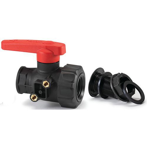 Aansluiting met klep voor bakken met een groot volume.