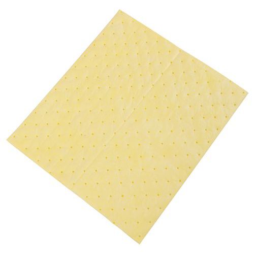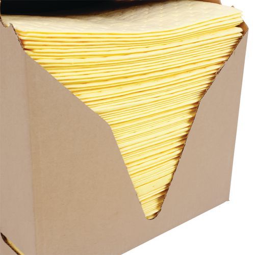 Absorptiemiddel in gewatteerde vorm, voor de absorptie van gevaarlijke stoffen. Schuurbestendig dankzij het grote aantal lagen. Geel, om gevaar aan te duiden. Geschikt voor dagelijks gebruik als doek voor het opnemen van gelekte of ontsnapte producten. Perfect voor elke situatie waarbij vloeistoffen en chemische producten moeten worden opgeveegd