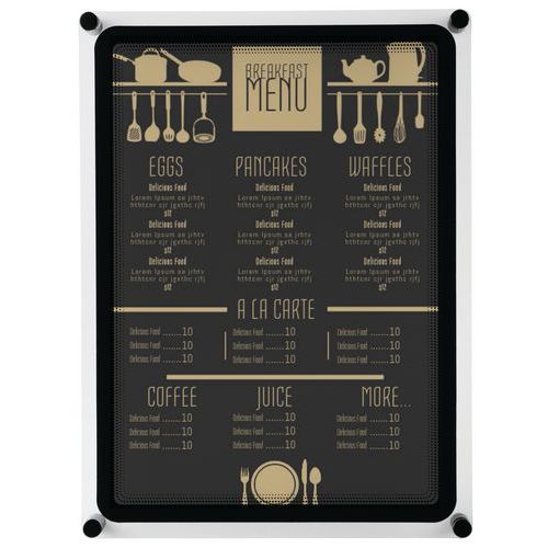 | Productnaam | Affichehouder wandmodel Crystal met insteekmap Magneto, Materiaal: Plexiglas, Hoogte: 342 mm |