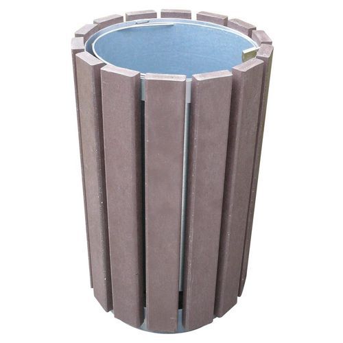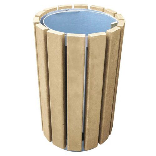 - Ronde afvalbak zonder deksel met latten van gerecycled kunststof, dikte 30 mm.