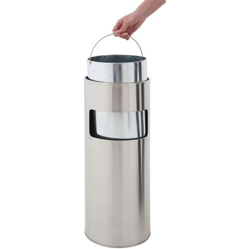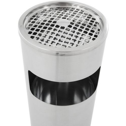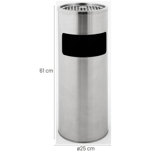 | Productnaam | Afvalbak met asbak rond, Asbak inhoud: 4 L, Vuilnisbak inhoud: 12.5 L, Kleur: Grijs, Materiaal: Rvs |