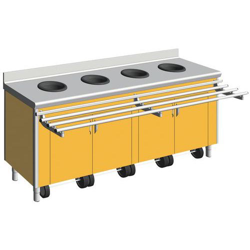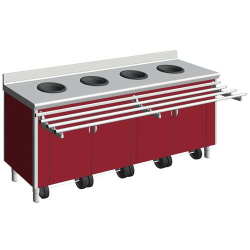 Voor volwassenen Uitgerust met 4 afvalgaten Geleverd met 4 zakhouders Rechter achterwand hoogte 10 cm. Afmetingen l x h x d cm: 220 x 60 x 90 cm.